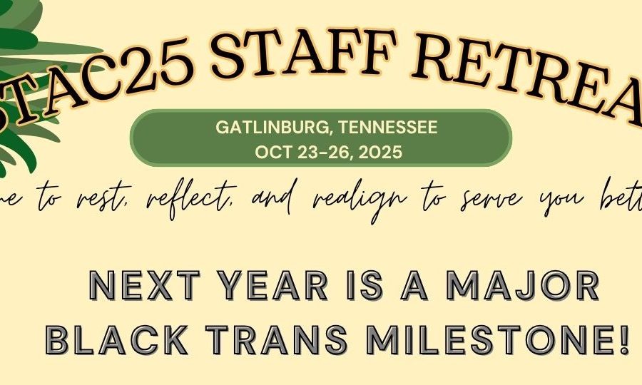 Help Shape the 13th National Black Trans Advocacy Conference & Awards Gala #BTAC2026 Theme October 23, 2025 Conference The BTAC Team is on our annual Staff Retreat! This special time allows us to rest, reflect, and realign so we can continue to serve... Read more